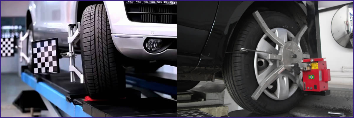 Alinhamento / Geometria: É o reajuste das dimensões e especificações geométricas do veículo. Estas dimensões sofrem alterações ao longo da utilização do automóvel, e por isso recomenda-se o alinhamento periódigo do veículo. Além disso, é aconselhavel também a realização do processo a cada troca de pneus, ou quando o motorista notar problemas como trepidações nas rodas dianteiras, vibrações incomuns no carro, volante pesado, desgaste irregular nos pneus e desvio da direção para algum dos lados.